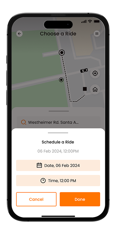 Enter your pickup and drop-off points — the app instantly finds the best route nearby for a smooth start.