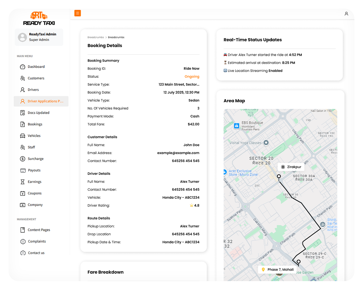 Track your driver’s real-time location for a more transparent and reliable ride. Stay updated and ensure timely pickups with ease.